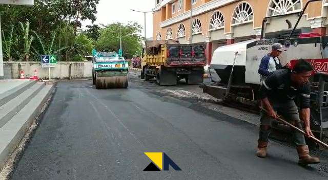 Aspal hotmix hasil produksi langsung dari pabrik internal sehingga mutu campuran stabil, suhu terjaga, dan pasokan material tepat waktu. Hal ini membantu menghasilkan permukaan jalan yang lebih padat dan tahan lama.